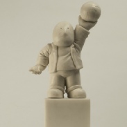 con una pequeña escultura de madera de Timo recargándose sobre el mundo: “Alcanzando